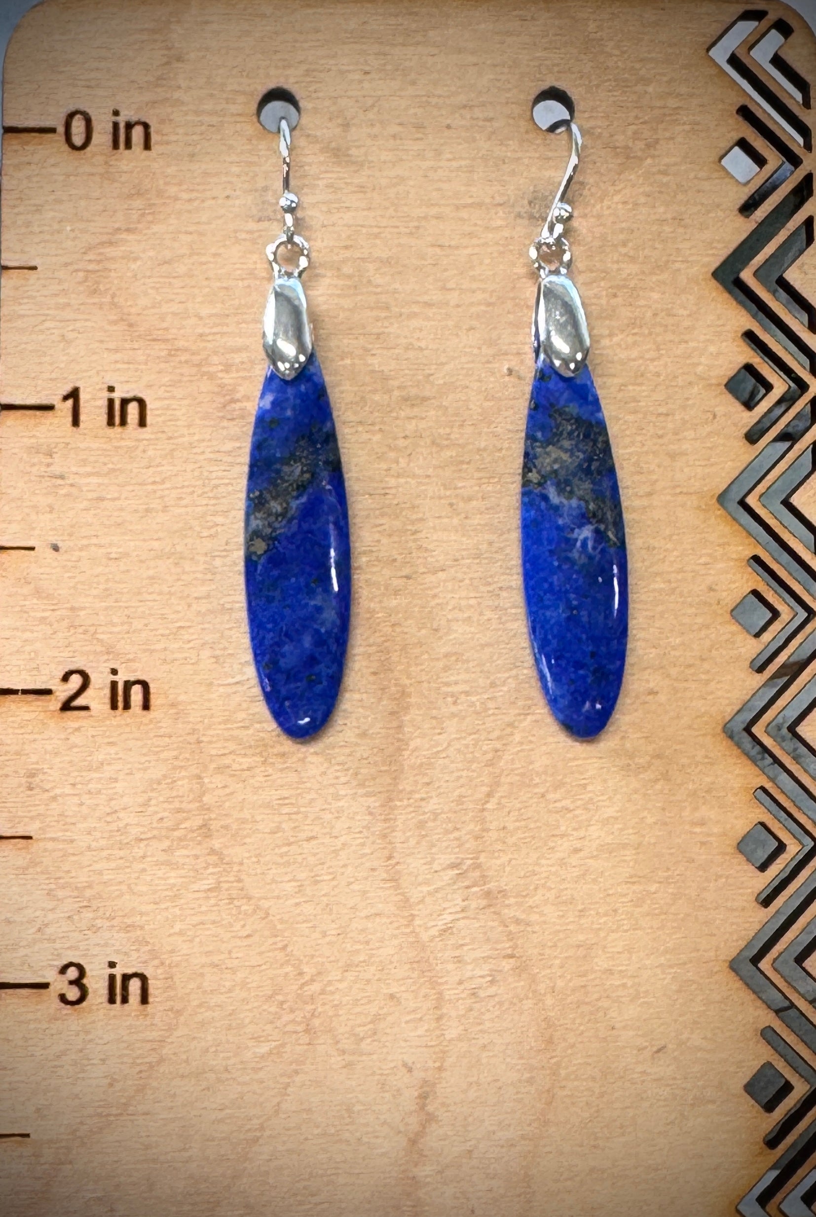 Expertly crafted with beautiful blue lapis stone and sterling silver, these earrings exude elegance and sophistication. Add a touch of glamour to any outfit with these stunning earrings, perfect for any occasion.
