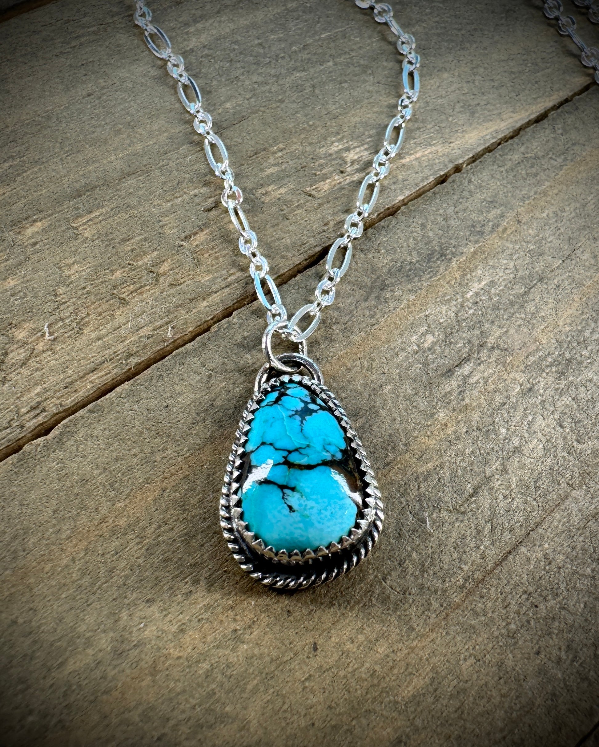 Let your adventurous spirit shine with this gorgeous turquoise drop necklace! Suspended from sterling silver, this radiant stone brings instant joy and southwestern flair to your jewelry collection. Whether you're channeling boho vibes or just want to add a splash of color to your day, this playful piece delivers personality and elegance in one stunning package. Handcrafted in the Texas Hill Country.